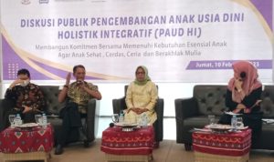 Hal itu disampaikan direktur Lembaga pemberdayaan perempuan (LPP) Bone Dra. A. Ratnawati saat membuka Diskusi publik pengembangan anak usia dini  Holistik Integratif (Paud HI) di salah satu hotel  jalan Ahmad Yani  kab. Bone , Jum’at (10/2/2023)
