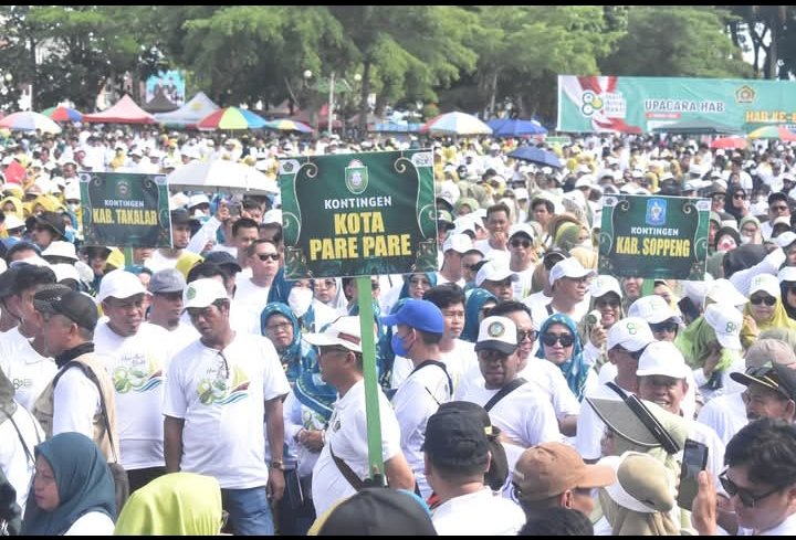 Pelepasan peserta Gerak jalan kerukunan beragama yang berjumlah puluhan ribu ini tumpah ruah memadati lapangan merdeka dengan melibatkan 24 Kabupaten /Kota