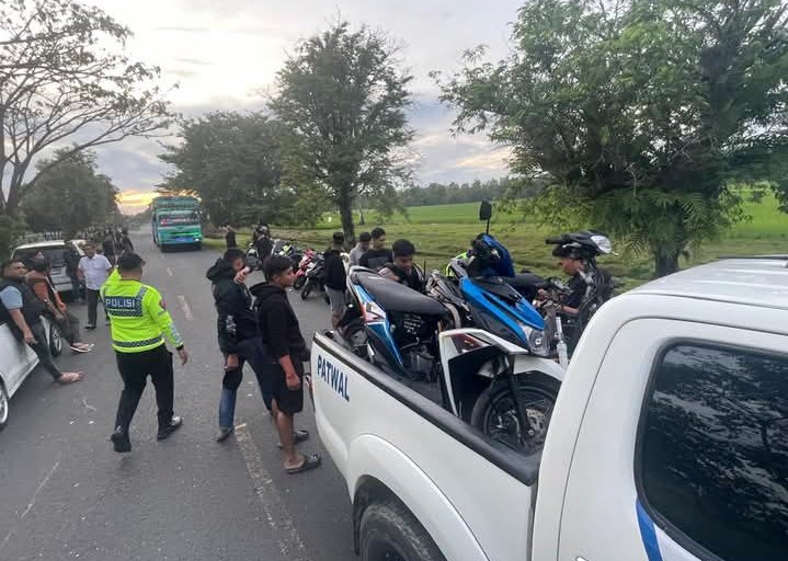 BONE – PENA AKTUAL.COM – Aksi balap liar di jalan raya Desa Usa Kecamatan Palakka dan Desa Abbumpungeng (Lerang), Kabupaten Bone, dibubarkan aparat gabungan Polres Bone terdiri dari Tim Bali Satuan Lalulintas dan Sat Sabhara Polres Bone, Kamis (26/2/2026) subuh.