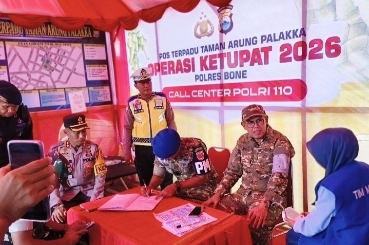 BONE – PENAAKTUAL.COM – Wakil Bupati Bone, Andi Akmal Pasluddin, meninjau langsung Pos Terpadu di Taman Arung Palakka dalam rangka Operasi Ketupat 2026 yang dilaksanakan oleh Polres Bone, Kamis (19/3/2026).
