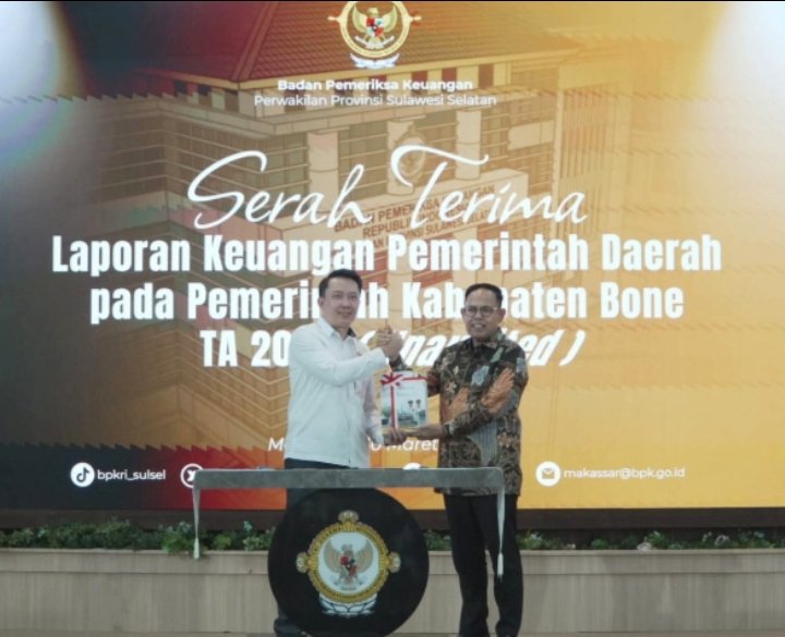 Dalam kesempatan itu, Wakil Bupati Bone Andi Akmal Pasluddin melakukan penandatanganan berita acara serah terima LKPD, yang kemudian dilanjutkan dengan penyerahan dokumen LKPD Kabupaten Bone kepada BPK Perwakilan Sulawesi Selatan. Dokumen tersebut diterima langsung oleh Kepala BPK RI Perwakilan Provinsi Sulawesi Selatan, Winner Franky Halomoan Manalu, S.E., Ak., M.Ak., CSFA, CA, ACPA, ERMAP, GRCA, GRCP,