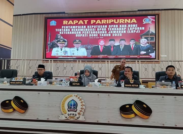 Acara ini dipimpin langsung oleh Ketua DPRD Bone, Andi Tenri Walinonong, S.H.,di ruang sidang DPRD setempat, sebagai bagian akhir dari proses pertanggungjawaban LKPJ Bupati Tahun Anggaran 2025.